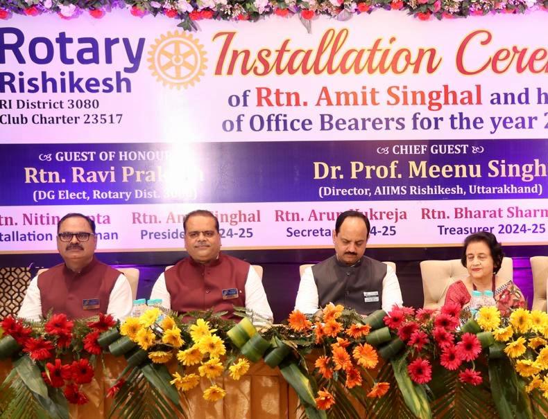 ऋषिकेश ,24 जुलाई।रोटरी क्लब ऋषिकेश की नई टीम का अधिष्ठापन समारोह में मुख्य अतिथि एम्स के डायरेक्टर प्रो. मीनू सिंह रोटरी के डिस्टिक गवर्नर रवि प्रकाश ने