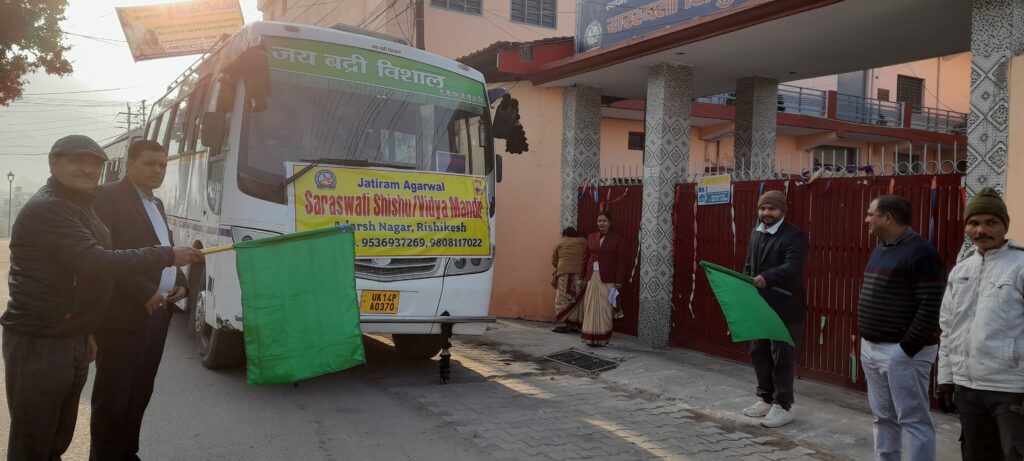 ऋषिकेश, 25 दिसंबर । जाती राम अग्रवाल सरस्वती शिशु विद्या मंदिर आर्दश नगर के 120 बच्चों का दल शैक्षणिक भ्रमण के लिए टपकेश्वर और एफ आर आई के लिए रवाना हुआ, जिसे ऋषिकेश रेलवे स्टेशन के अधीक्षक विनय कुमार ने झंडी दिखाकर ऋषिकेश से रवाना किया गया।