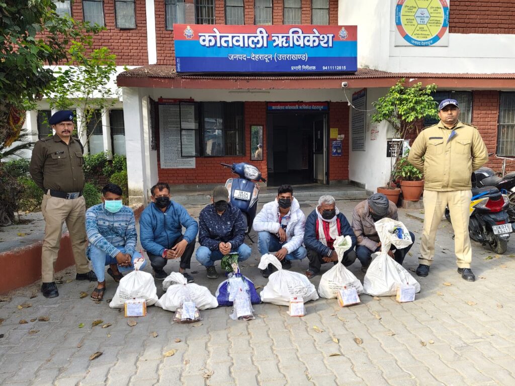 इसी कड़ी में प्रभारी निरीक्षक कोतवाली ऋषिकेश के द्वारा सोमवार 24 फरवरी को पुलिस टीम द्वारा ऋषिकेश के अलग –अलग स्थानो से 06 लोग 1:शैलेन्द्र कुमार पटेल पुत्र कनक पटेल निवासी 419 आवास विकास कॉलोनी ऋषिकेश जनपद देहरादून उम्र- 49 वर्ष, 2-अभियुक्त सुशील कुमार पुत्र श्री श्यामलाल निवासी – बापूग्राम गली न0 01 IDPL थाना ऋषिकेश जनपद देहरादून उम्र -59 बर्ष, 3- अभियुक्त हैप्पी जाटव पुत्र पुत्र राजेश जाटव निवासी –गोविन्द नगर झुग्गी झोपडी ऋषिकेश जिला देहरादून उम्र -19 बर्ष, 4-अभियुक्त लाल बहादूर पुत्र गणेश साहनी निवासी गली न0 22 चद्रेश्वरनगर ऋषिकेश उम्र -33 बर्ष, 5- अभियुक्त कामेन्द्र पुत्र स्व0 नत्थु सिह निवासी –गली न0 16 के पास चंद्रेश्वर मंदिर मार्ग चंद्रेश्वर नगर ऋषिकेश दे0दून उम्र- 25 वर्ष, 6-अभियुक्त विक्रान्त चौहान पुत्र श्री रविन्द्र सिह चौहान निवासी –सोमेश्वर मंदिर रोड म0न0 143/1गंगानगर गली न0 11 ऋषिकेश उम्र- 30 वर्ष को अलग – अलग अवैध शराब की तस्करी व विक्रय करते हुये गिरफ्तार किया गया। जिनके कब्जे से 1- 36 पव्वे MC DOWELLS NO WHISKY अंग्रेजी शराब (अभियुक्त शैलेन्द्र कुमार के कब्जे से) 2- 51 ट्रेटा पाउच माल्टा देशी मसालेदार शराब माल्टा (अभियुक्त सुशील कुमार के कब्जे से ) 3- 58 ट्रेटा पैक माल्टा देशी मसालेदार (अभियुक्त हैप्पी जाटव के कब्जे से 4- 33 ट्रेटा पैक माल्टा देशी मसालेदार शराब माल्टा य(अभियुक्त लाल बहादुर के कब्जे से) 5- 40 ट्रेटा पैक माल्टा देशी शराब वाहन संख्या – UK14J-9554 स्कूटी (अभियुक्त कामेन्द्र के कब्जे से) 6- 16 पव्वे IMPERIAL BLUE व 04 पव्वे MC DOWELLS NO WHISKY अंग्रेजी शराब (अभियुक्त विक्रान्त चौहान के कब्जे से) इनके विरुद्ध पुलिस द्वारा अलग –अलग आबकारी अधिनियम के अंतर्गत मुकदमा दर्ज किया गया है।