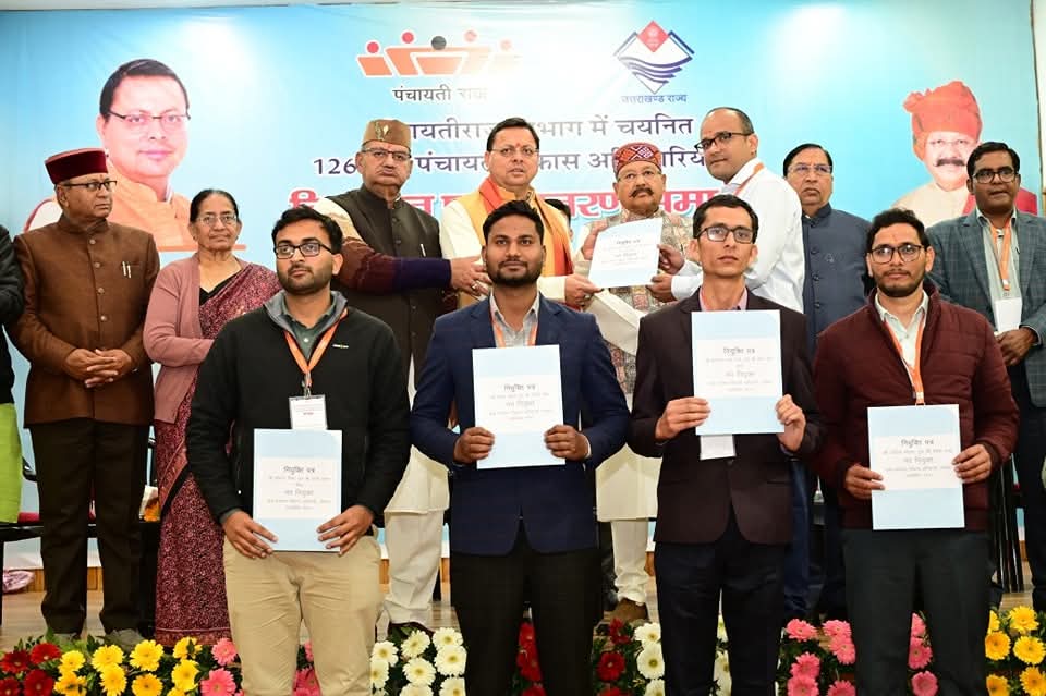 देहरादून 27 फरवरी। मुख्यमंत्री पुष्कर सिंह धामी ने आज मुख्यमंत्री आवास स्थित मुख्य सेवक सदन में पंचायतीराज विभाग के अन्तर्गत 126 नवनियुक्त ग्राम पंचायत विकास अधिकारियों को नियुक्ति पत्र प्रदान किए। पिछले साढ़े तीन सालों में राज्य में 20 हजार से अधिक युवाओं को सरकारी सेवाओं में नौकरी प्रदान की गई है। मुख्यमंत्री ने सभी अभ्यर्थियों को शुभकामनाएं देते हुए कहा कि यह दिन आपके जीवन में एक नया अध्याय लेकर आया है। उन्होंने आशा व्यक्त करते हुए कहा, नव चयनित अभ्यर्थी लोकतंत्र की सबसे महत्वपूर्ण इकाई ग्राम पंचायत के अभिन्न अंग बनकर गांवों का समग्र विकास सुनिश्चित करने की दिशा में कार्य करेंगे। राज्य के समग्र विकास के लिए गांवों का विकास जरूरी है। गांवों के विकास में एक ग्राम पंचायत विकास अधिकारी की भूमिका अत्यंत महत्वपूर्ण होती है। मुख्यमंत्री ने कहा कि राज्य सरकार उत्तराखण्ड को देश का अग्रणी राज्य बनाने के उद्देश्य से शहरों के साथ गांवों के विकास पर भी प्राथमिकता के साथ कार्य कर रही है। राज्य में सख्त भू-कानून के लिए विधानसभा में विधेयक पारित हो चुका है। मुख्यमंत्री ने कहा कि उत्तराखण्ड के निर्माण का सपना हमारे आन्दोलनकारियों ने इसलिए देखा था कि उत्तराखण्ड के अंतिम छोर में खड़े हुए व्यक्ति तक विकास पहुंचे। सभी उत्तराखण्डवासी मिल जुलकर राज्य को आगे बढ़ायें। मुख्यमंत्री ने सभी उत्तराखण्ड वासियों से आग्रह किया कि किसी भी प्रकार के बहकावे में न आकर एक उत्तराखण्ड की भावना से मिलकर कार्य करें। उन्होंने सख्त लहजे में कहा कि चाहे वे कोई भी हो, मंत्री हो, विधायक हो, सांसद हों या कोई आम उत्तराखण्डी ही क्यों न हो, उत्तराखण्ड की एकता के साथ खिलवाड़ करने वालों को सरकार बिल्कुल भी माफ नहीं करेगी। आज के बाद सभी प्रकार के भड़काऊ बयानों को गंभीरता से लिया जाएगा और उत्तराखण्ड की अस्मिता से खिलवाड़ करने वालों पर सख्त कार्रवाई सुनिश्चित की जाएगी। इस अवसर पर कैबिनेट मंत्री श्री गणेश जोशी, श्री सतपाल महाराज, राज्यसभा सांसद श्री नरेश बंसल, विधायक श्री खजानदास, श्रीमती सविता कपूर, श्री बृजभूषण गैरोला, एकल सदस्यीय समर्पित आयोग के अध्यक्ष श्री बी.एस वर्मा, सचिव पंचायतीराज श्री चन्द्रेश यादव, निदेशक पंचायतीराज निधि यादव उपस्थित थे।