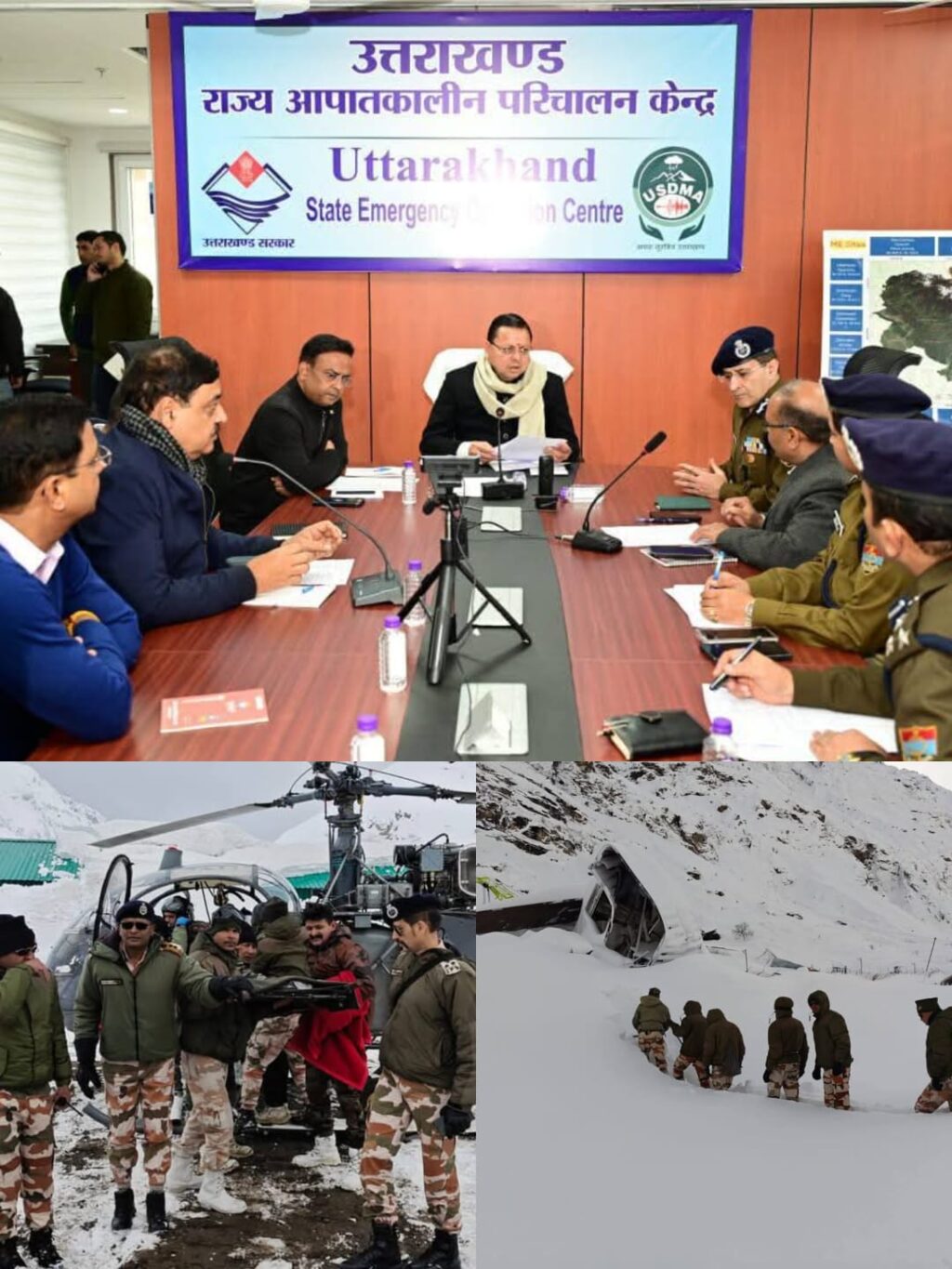घटनास्थल का निरीक्षण करने के पश्चात मुख्यमंत्री श्री पुष्कर सिंह धामी सीधे यूएसडीएमए स्थित राज्य आपातकालीन परिचालन केंद्र पहुंचे और शासन के वरिष्ठ अधिकारियों के साथ रेस्क्यू अभियान को लेकर चर्चा की। उन्होंने बताया कि राहत और बचाव दलों ने सराहनीय कार्य करते हुए अब तक 50 लोगों को रेस्क्यू कर लिया है। हिमस्खलन में फंसे 05 और श्रमिकों की खोजबीन के लिए युद्धस्तर पर अभियान चलाने के निर्देश दिए गए हैं।