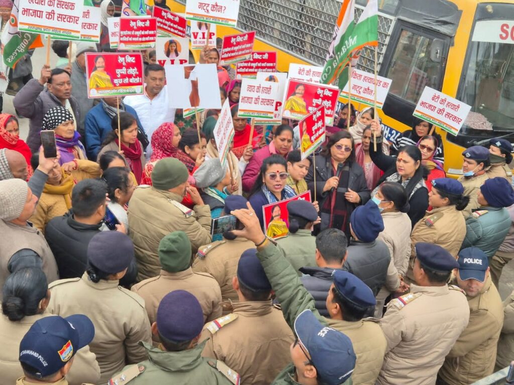 महिला कांग्रेस कार्यकर्ताओं ने यमकेश्वर विधायक रेणु बिष्ट के ऋषिकेश आवास का किया घेराव,