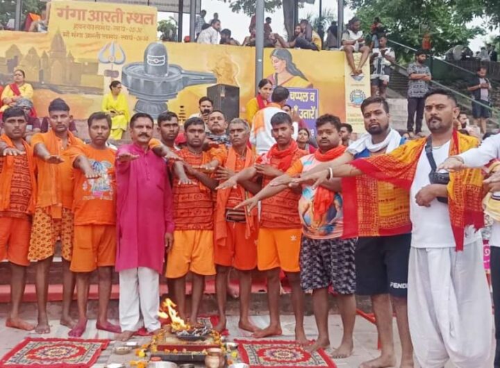 पूर्णानंद घाट महिला गंगा आरती में कांवड़ियों को सुरक्षित यात्रा के लिए पुलिस संग सहयोग के संकल्प...