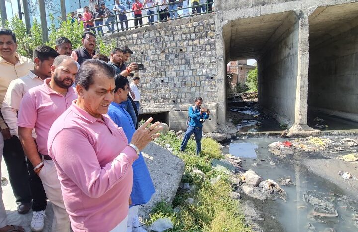 सीवरेज ट्रीटमेंट प्लांट का निरीक्षण के दौरान गंगा जी में गिर रहे नाले को को देख क्षेत्रीय...